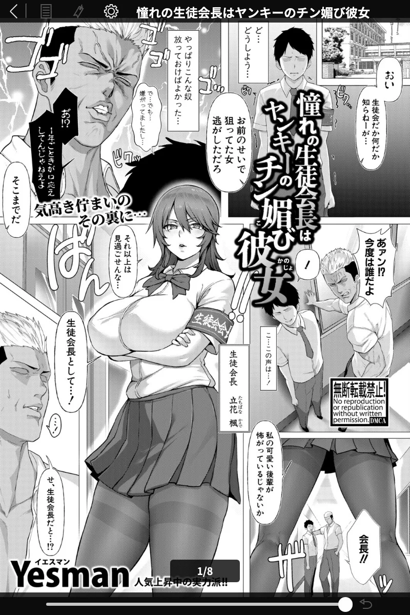 Aはい、「憧れの生徒会長はヤンキーのチン媚び彼女(単話)」のサンプルページを無料でお読みいただけます。全 5 ページのサンプルを公開中です。全編は FANZA でご購入いただけます。