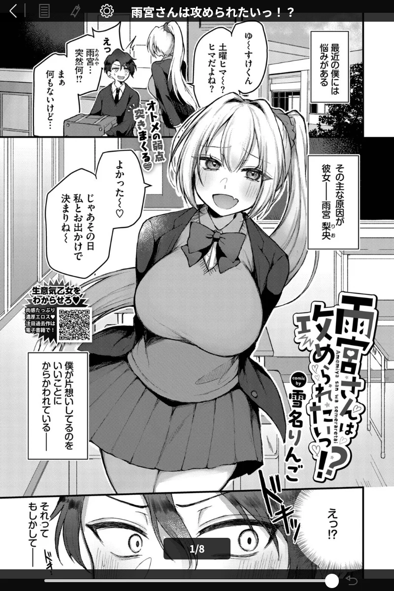 Aはい、「雨宮さんは攻められたいっ!?(単話)」のサンプルページを無料でお読みいただけます。全 5 ページのサンプルを公開中です。全編は FANZA でご購入いただけます。