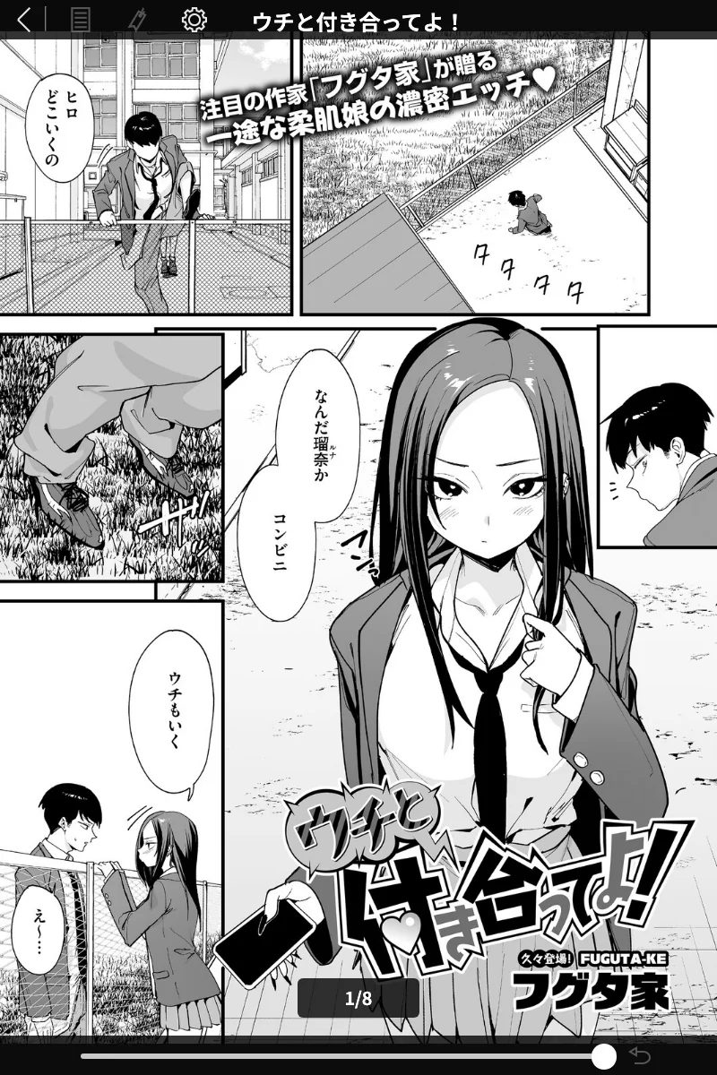 Aはい、「ウチと付き合ってよ!(単話)」のサンプルページを無料でお読みいただけます。全 5 ページのサンプルを公開中です。全編は FANZA でご購入いただけます。