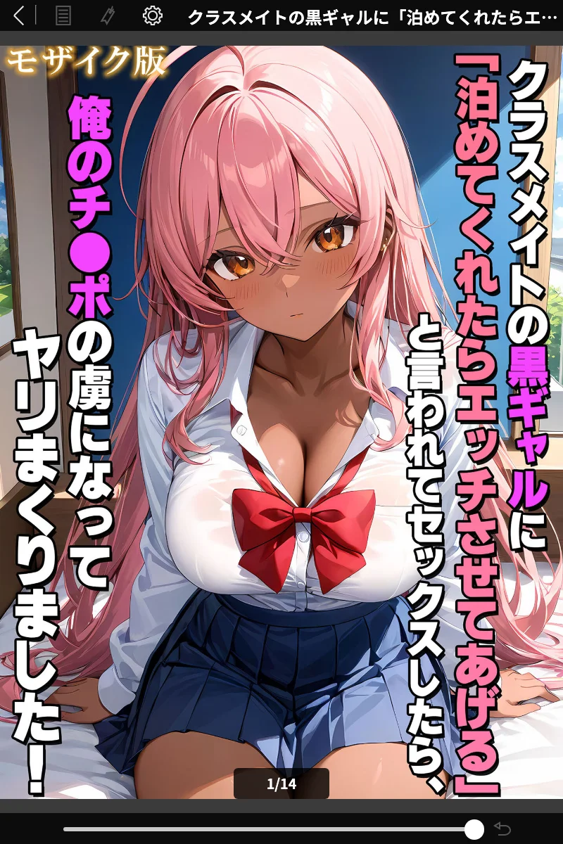 Aはい、「クラスメイトの黒ギャルに「泊めてくれたらエッチさせてあげる」と言われてセックスしたら、俺のチ●ポの虜になってヤリまくりました! モザイク版」のサンプルページを無料でお読みいただけます。全 8 ページのサンプルを公開中です。全編は FANZA でご購入いただけます。